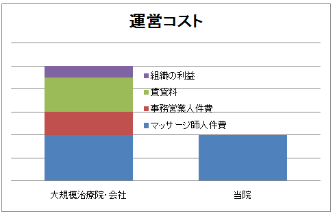 その点、当院のような自宅で一人でやっている治療院ですと営業・事務職員の人件費は不要ですし、建物代も不要となります。